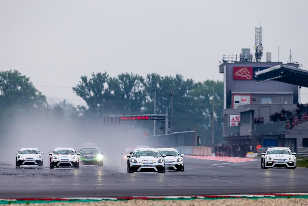 Der Renntag startet mit zwei Qualifyings mit neuen Regenreifen auf nasser Strecke. Mir gelingen die beste Zeit in der Gruppe und die Startplätze 4 und 5 gesamt für die beiden Sprintrennen. In Rennen 1 rutsche ich früh in den Kies, falle auf Platz 10 zurück, kann mich aber bis zum Ende des Rennens auf Platz 5 gesamt und Platz 3 in der Gruppe zurückkämpfen. In Rennen 2 fahre ich mit 2 : 14 meine schnellste Runde, eine beste Sektorenzeit und lande auf Platz 4 gesamt und Platz 2 in der Gruppe. Im Endurance-Rennen fahre ich von Startplatz 5 auf Platz 1 vor und führe zwei Runden, drehe mich später aber und falle auf Platz 6 zurück. Für den zweiten Teil der Endurance löst mich Markus Enzinger am Steuer ab und schafft es, Platz 6 zu halten, trotz der durch meinen Dreher über Gebühr malträtierten Reifen.