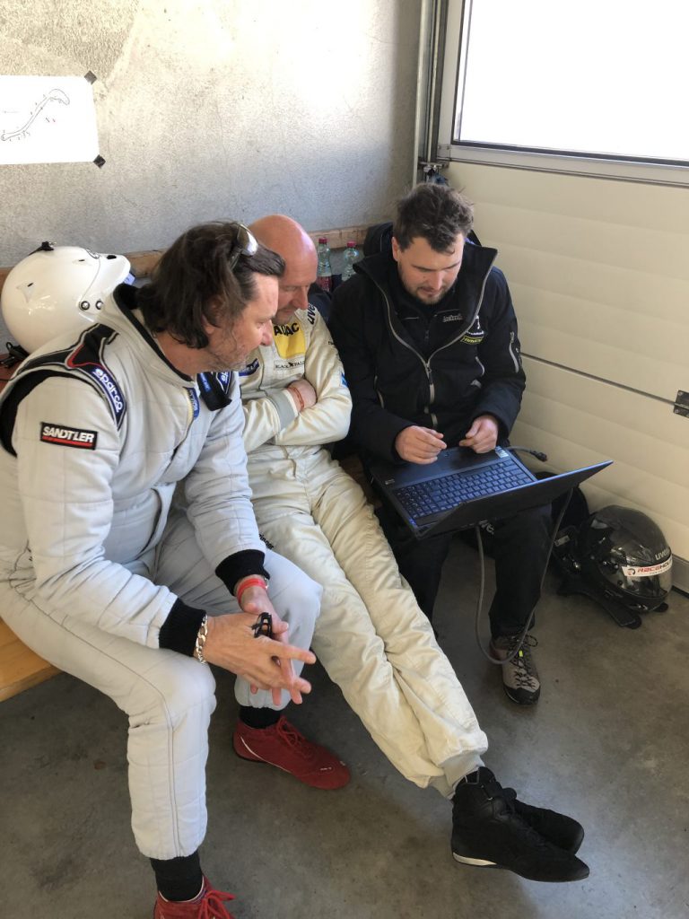 Gleich bei den ersten Testfahrten zur Serie am Salzburgring am 6. April gerät unser Konzept, das sich noch im Januar und März bei Fahrten u.a. in Portimao und Barcelona bewährt hatte, unter Druck. Der Zeitplan ist sehr viel enger, als wir das gewohnt sind, die technischen Voraussetzungen der Datensammlung sind anders, anfangs fehlt uns der zweite Sitz. Wir geraten aus dem Rhythmus und unsere Rundenzeiten lassen insbesondere mich zweifeln, ob wir auf dem richtigen Weg sind.