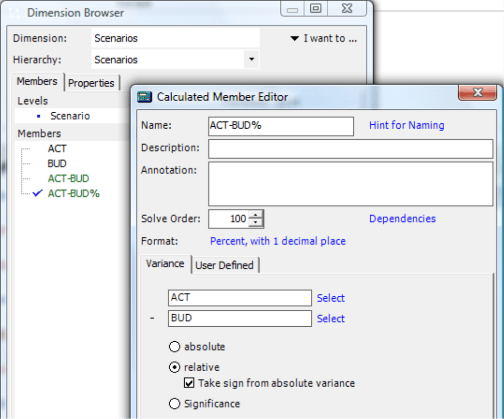 DeltaMaster even does most of the work for you! The dialog for creating calculated members offers a third variance type called Significance (see the screenshot on page 2 for more information. Please note, however, that this feature will be renamed Weighted variance in future releases). The algebraic sign of the weighted variance is identical to the absolute variance.