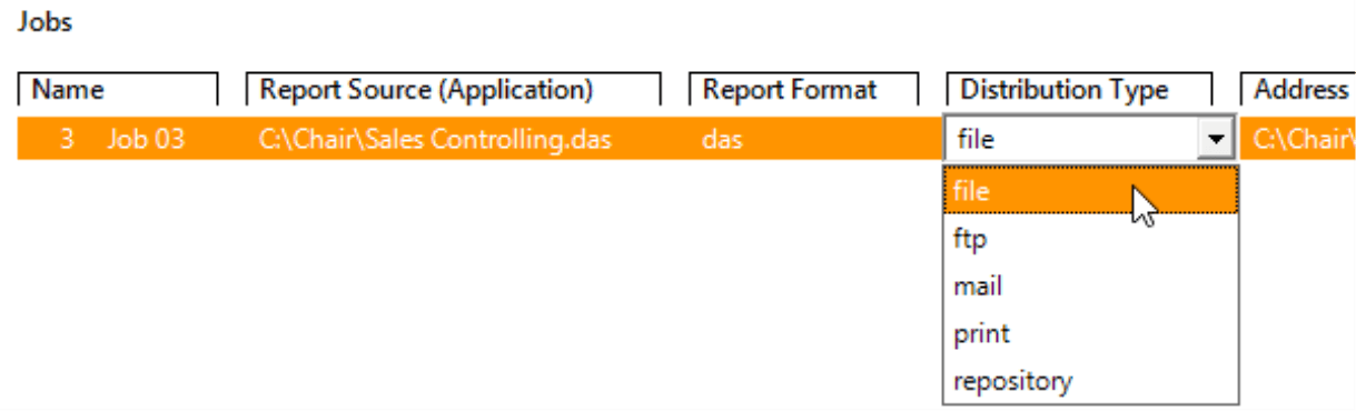 You can flexibly combine these five distribution types with the report formats in each job. Only two restrictions apply: