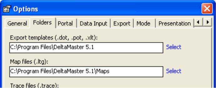 To export data from an analysis session, DeltaMaster expects the templates in the folder specified in the general options (Extras menu). By default, this is DeltaMaster’s installation directory. The file names of the templates are: