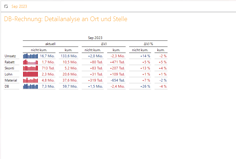 Liegt in unserer Business-Intelligence-Software DeltaMaster ein Bericht in Form einer Grafischen Tabelle vor, entsteht oft der Wunsch nach einer Detailanalyse bestimmter Werte. In DeltaMaster halten wir uns normalerweise an das Paradigma, weiterführende Analysen möglichst an Ort und Stelle durchzuführen. In der folgenden Abbildung demonstrieren wir das Navigieren, um bestimmte Zahlenwerte nach einer weiteren Dimension zu zerlegen: