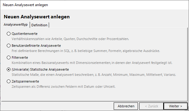 Neue statistische Analysewerte anlegen