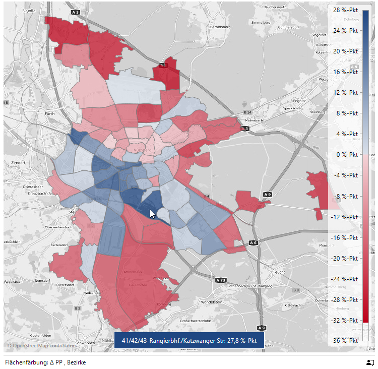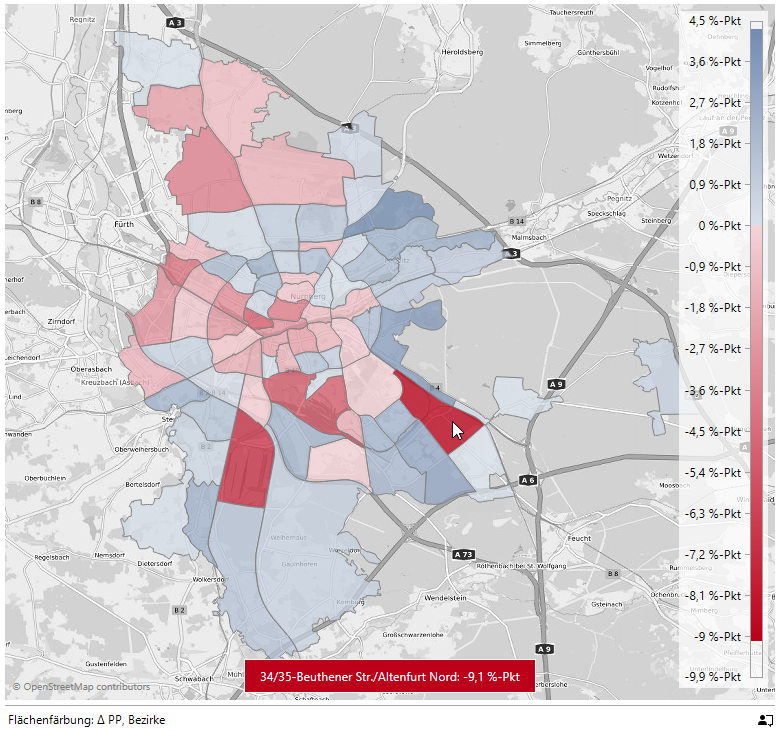 Der Mauszeiger befindet sich gerade auf 34/35-Beuthener Str./Altenfurt Nord mit 9,1 %-Punkten unter dem Gesamtwert.