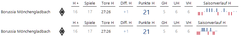 Nur wenn genau eine Mannschaft betrachtet wird, lässt sich die gesamte Historie mit der genannten Checkbox eindampfen und alle Lücken beseitigen. Hier ist das exemplarisch am Beispiel Borussia Mönchengladbach demonstriert: