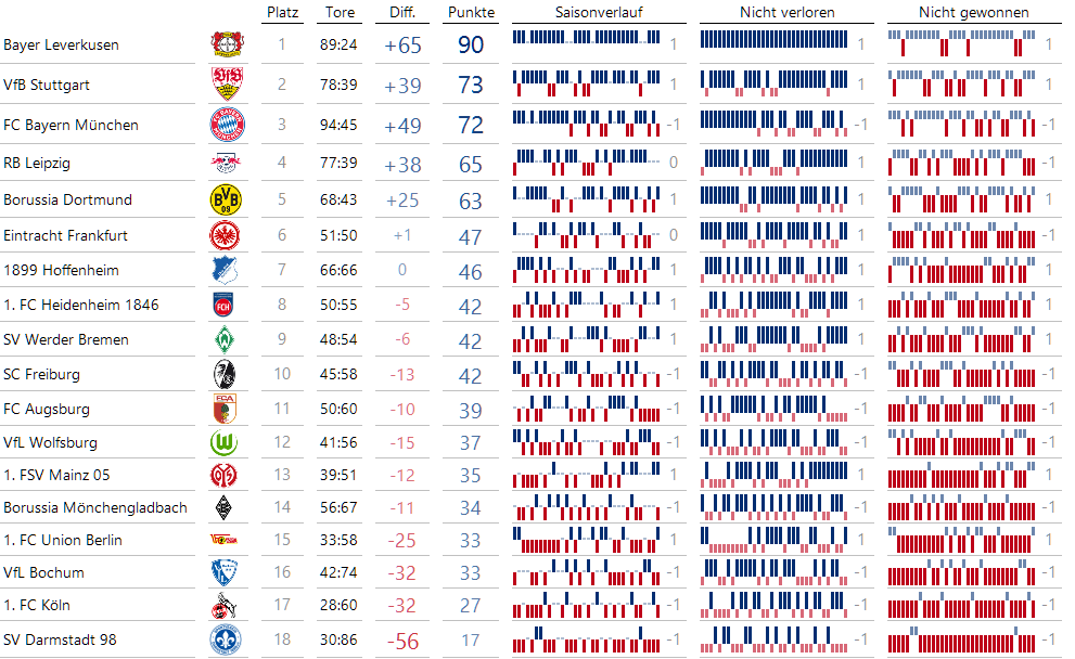 Der gesamte Spielverlauf der Bundesliga-Saison 2023/24 auf einen Blick