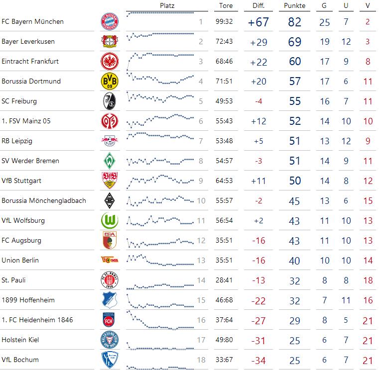 Bundesliga-Tabelle mit Platzierungsverlauf