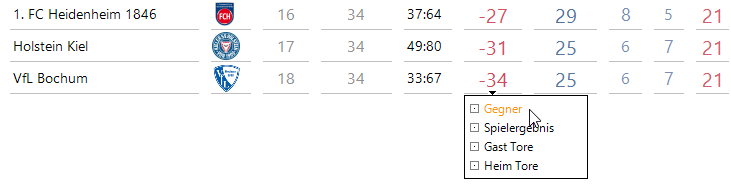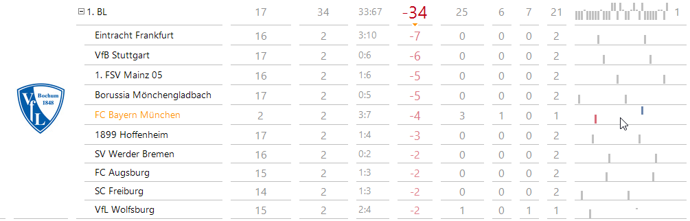 Stellt man sich somit vor, dass beispielsweise eine Tabelle nur mit den Spielen gegen den FC Bayern München erstellt wird, dann liegt Bochum wie in der Navigation sichtbar auf dem 2. Platz: