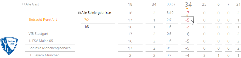 Kehren wir noch einmal zur ursprünglichen Tabelle zurück. Hier hatten wir die schlechte Tordifferenz des VfL Bochum erklären wollen: