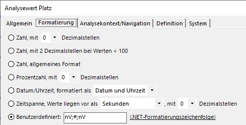 Auf der Microsoft-Seite Custom numeric format strings können Sie nachlesen, wie Formatierungsstrings aufgebaut sein müssen. Mit den drei Angaben, die durch zwei Semikola getrennt sind, legen Sie fest, was bei positiven und negativen Werten bzw. bei einer 0 passieren soll. Da die negativen Platzierungen ausschließlich zum zweiten Fall gehören, ist es irrelevant, was wir an der ersten und an der dritten Stelle schreiben.