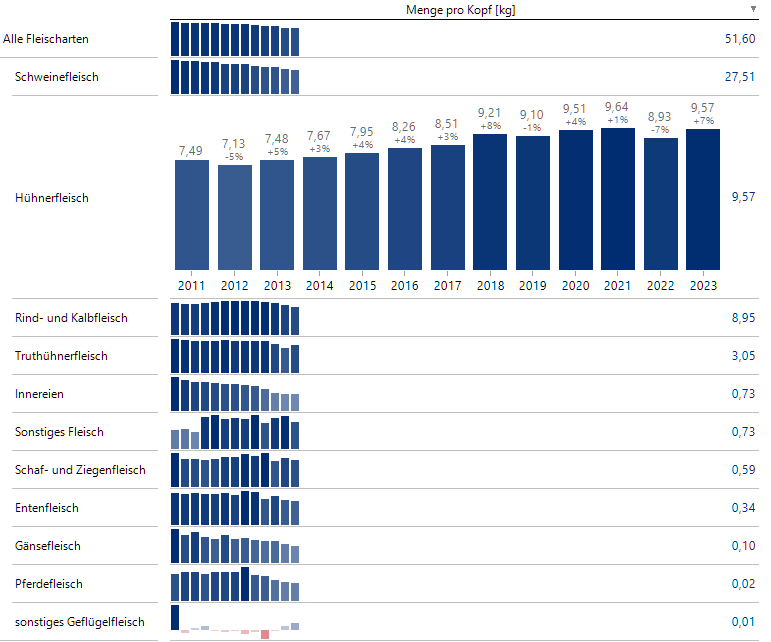 Entwicklung des Fleischverzehrs pro Kopf – Hühnerfleisch im Fokus