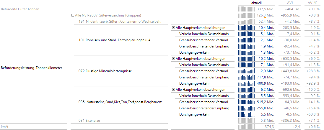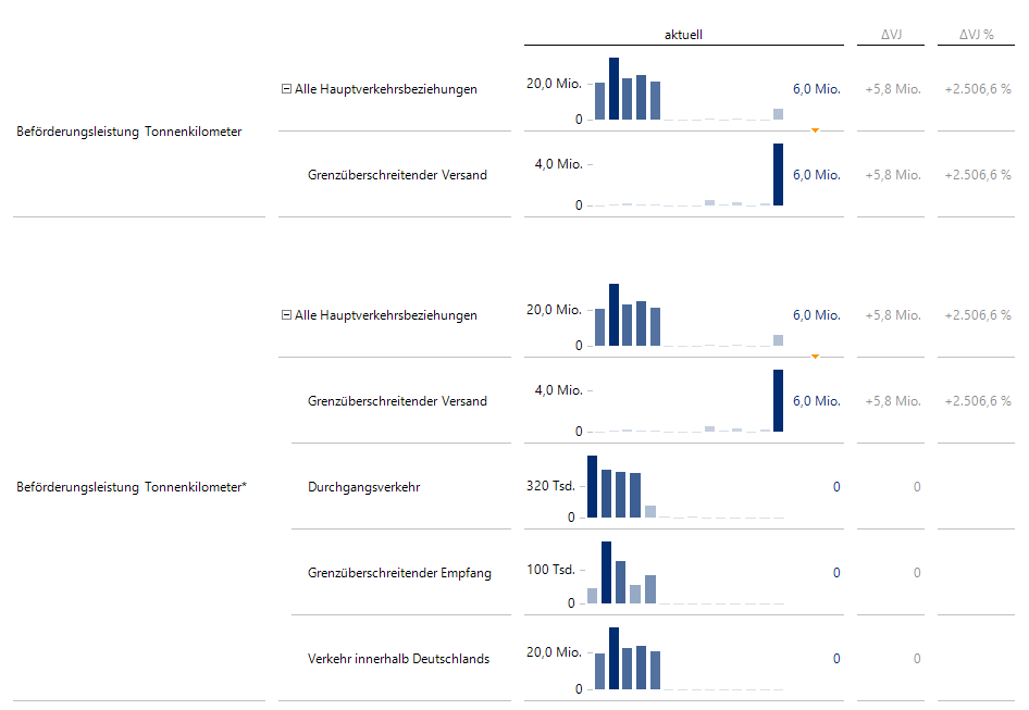 Navigieren: Beförderungsleistung Tonnenkilometer