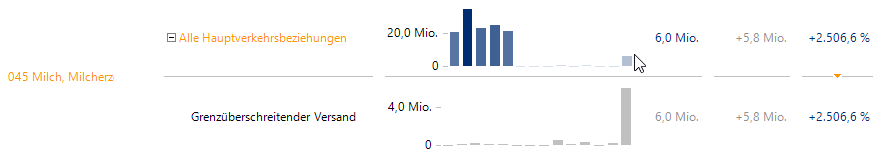 Wird nun mit dieser neuen Kennzahl (*) navigiert, sehen wir, welche Hauptverkehrsbeziehungen in der Vergangenheit zum Gesamtwert beigetragen haben: