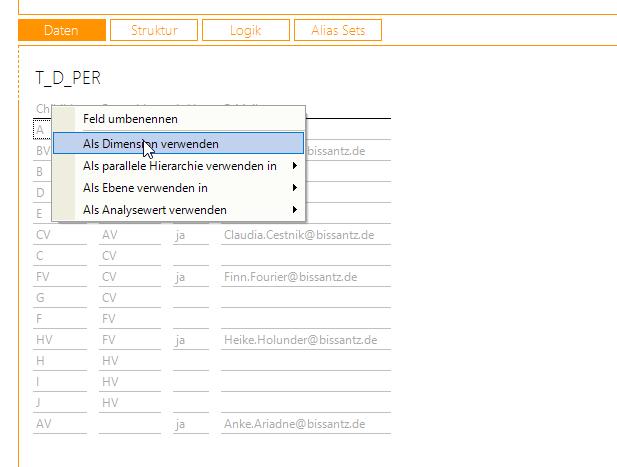 Im Modellieren-Modus deklarieren wir die ChildId-Spalte als Dimension:
