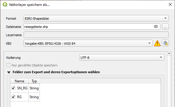 Shapefile in QGIS mit neuem KBS exportieren