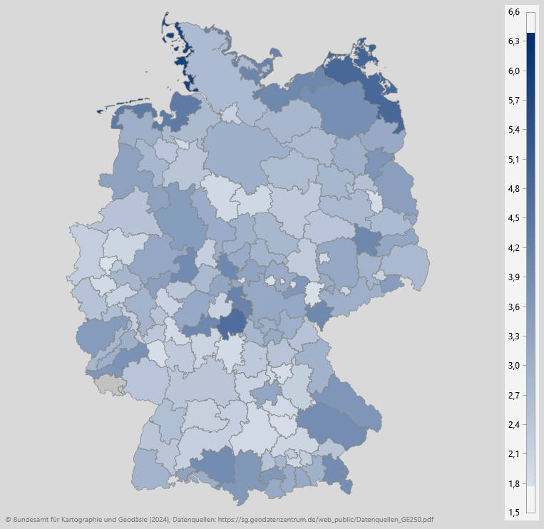© Bundesamt für Kartographie und Geodäsie (2024), Datenquellen: https://sg.geodatenzentrum.de/web_public/Datenquellen_GE250.pdf - Daten: Tabellen mit Präfix 45412 zu den Übernachtungszahlen bei GENESIS, Datenlizenz Deutschland – Namensnennung – Version 2.0 (Lizenztext unter https://www.govdata.de/dl-de/by-2-0)