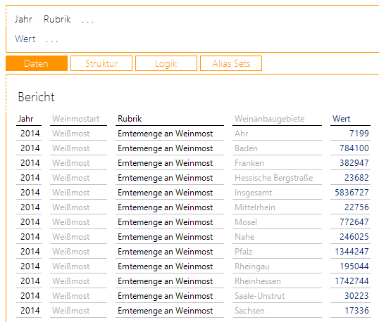 Alternativ stünden in anderen Datensätzen Mostqualität, Rebsorte oder Bundesländer zur Auswahl.