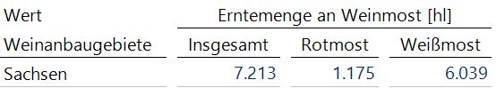 Bei der Weinmost-Art (ich schreibe gelegentlich lieber Weinmost-Art, da ich Weinmostart ständig als Weinmo-Start lese) existiert ein ähnliches Problem mit anderer Ursache. Schauen wir beispielsweise auf Sachsen, so sehen wir diese Werte: