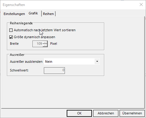 Damit DeltaMaster eine neu vergebene Reihenfolge aber auch berücksichtigt und speichert, ist es zwingend notwendig, auf dem Reiter Grafik vorher die automatische Sortierung nach dem letzten Wert auszuschalten: