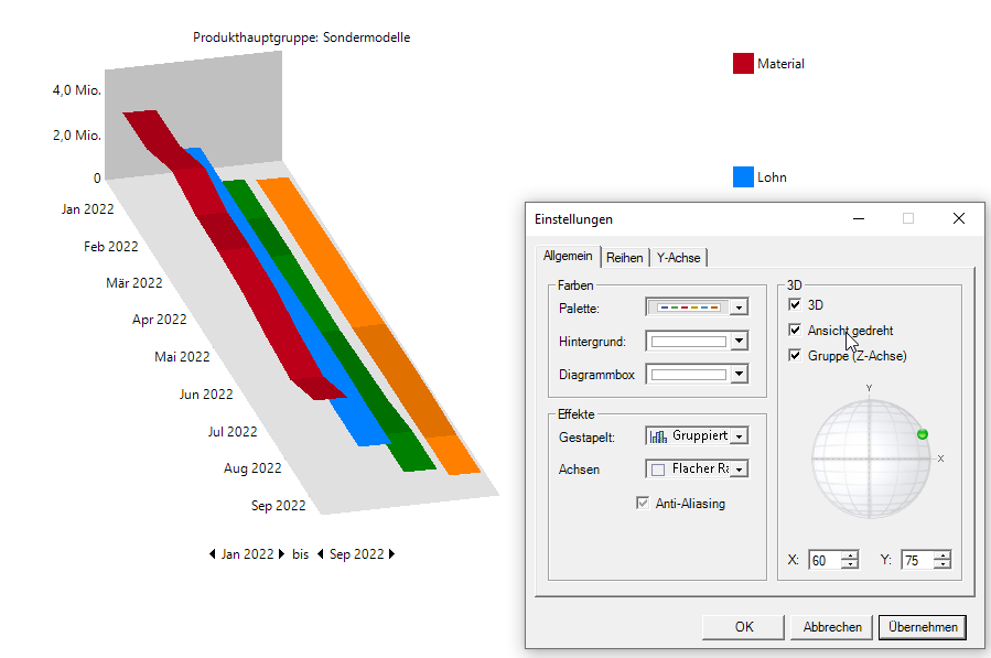 Zeitreihenanalyse der Kostenarten mit Z-Achse