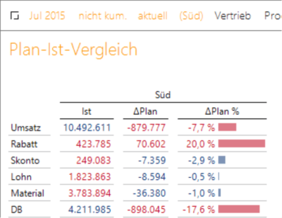Zum gewählten Beispiel ist anzumerken: In einer produktiven Anwendung würden wir empfehlen, nicht nur ein paar Monate nebeneinander zu schreiben – das hätte zu wenig Signalwirkung und Handlungsimpuls. Interessanter wäre es etwa, den Drei-Monats-Durchschnitt auszurechnen und die Abweichung des aktuellen Monats zu diesem Durchschnitt anzugeben. Damit bekommt der Bericht eine Aussage! Eine schrittweise Anleitung dazu finden Sie in den DeltaMaster clicks! 07/2011.