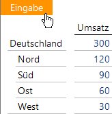 Wenn Sie die Eingabe mit der Eingabetaste beenden, verschiebt DeltaMaster die Markierung automatisch nach unten oder nach rechts zur nächsten Zelle (sofern dies so eingerichtet wurde). Der Doppelklick ist übrigens auch in Planungsanwendungen für das Navigieren vorgesehen: Damit führen Sie einen vordefinierten Navigationsschritt aus – oder, ab DeltaMaster 6.1.5, einen automatischen Navigationsschritt, falls kein (weiterer) Navigationsschritt vordefiniert ist. Das ist bemerkenswert, denn in Zellen, die durch das Navigieren eingeblendet werden, können Sie ebenfalls Werte eingeben! In vielen Fällen ist das sogar besonders lohnend, denn durch die automatische Sortierung werden in jedem Navigationsschritt die wichtigsten Positionen herausgegriffen, zum Beispiel die umsatzstärksten Produkte oder Kunden – und wenn man diese bearbeitet hat, ist womöglich bereits ein erklecklicher Teil des Gesamtwerts geplant.