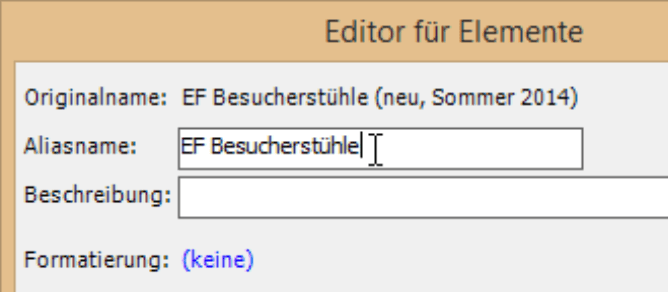 - Über das Kontextmenü im Dimensionsbrowser können Sie ein Element bearbeiten und einen Aliasnamen eintragen.