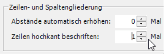 - Bei den Spalten wird von innen gezählt. Durch das Drehen der Schrift werden die Zellen mit den Beschriftungen höher, die Texte werden weder umgebrochen noch abgeschnitten. Einzelheiten finden Sie in den DeltaMaster deltas! 5.5.9, Punkt 12.