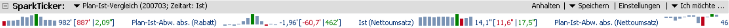 - Zum anderen erlaubt es der Berichtsserver in Verbindung mit einer neuen Zusatzoption, dem so genannten TickerPortal, die SparkTicker-Grafiken automatisiert zu exportieren. Einmal eingerichtet, können Sie also ohne eigenes Zutun auch eine große Anzahl von „Laufbändern“ generieren und diese regelmäßig aktualisieren lassen. So wie sonst .das- oder Office-Dateien über Jobs erzeugt und verteilt werden, können damit auch Tickerbilder berechnet und anschließend zum Beispiel per FTP auf einen Webserver überspielt werden.