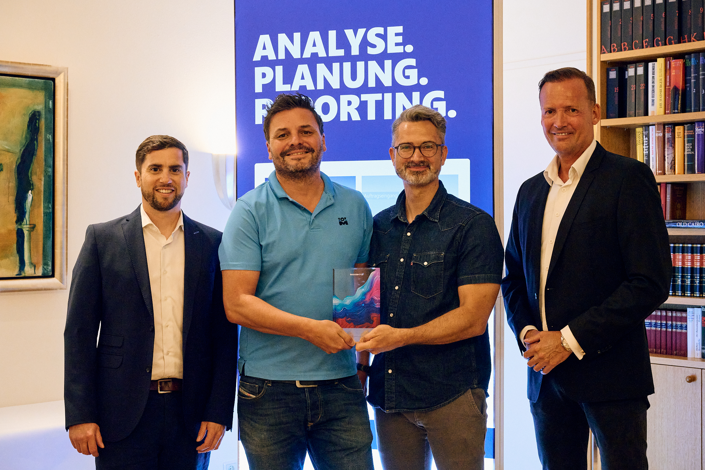 (v. l. n. r.) André Schuster (Bissantz), Dominik Löw und Andreas Schmid (TopM), Michael Nordhausen (Bissantz).