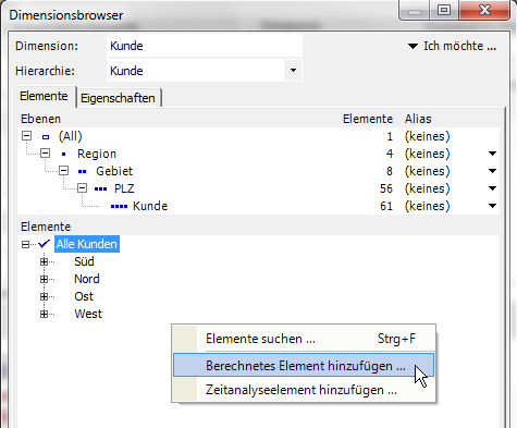 Abb. 1: Berechnete Elemente im Dimensionsbrowser
