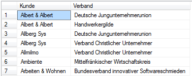Das Beispiel zeigt, dass die Kunden „Albert & Albert“ sowie „Allberg Sys“ Mitglied in jeweils zwei Verbänden sind.