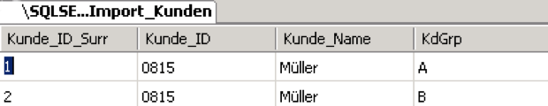 Betrachten wir einmal das Verhalten von “Kunde” zu “Kundengruppe”. Die Kundenstammdaten werden z. B. täglich mit dem üblichen Import-Konzept (Full-Load) geladen. Bei allen weiter unten dargestellten Ansätzen muss aber sichergestellt sein, dass die vorhergehenden Zustände im DWH nicht überschrieben werden. Nach der Datenübernahme folgt dann wiederum innerhalb des DWH die Aufbereitung der neuen Daten. Hierzu kann für den täglichen Import z. B. die Tabelle “T_Import_Kunde” dienen. Diese Tabelle wird täglich komplett gelöscht und wieder neugefüllt. Eine zweite Tabelle “T_Import_Kunde_Backup” kann dann für die Historisierung verwendet werden.