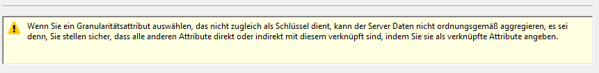 Analysis Services lässt die Auswahl der Kundenebene zu (sofern diese Spalte in der Bridge Tabelle vorhanden ist), gibt aber eine Warnung aus, dass möglicherweise nicht richtig aggregiert werden kann.
