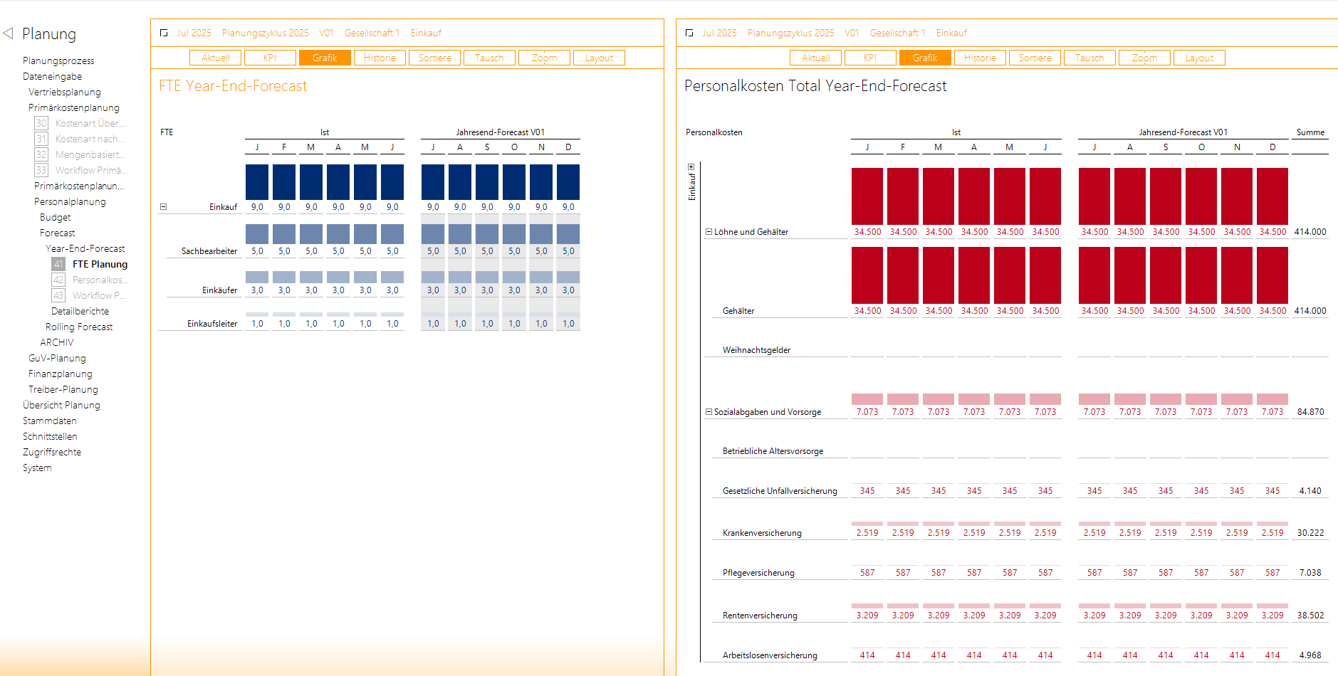 Ob Budget oder Forecast – die Personalplanung ist in beiden Planungsszenarios verfügbar.