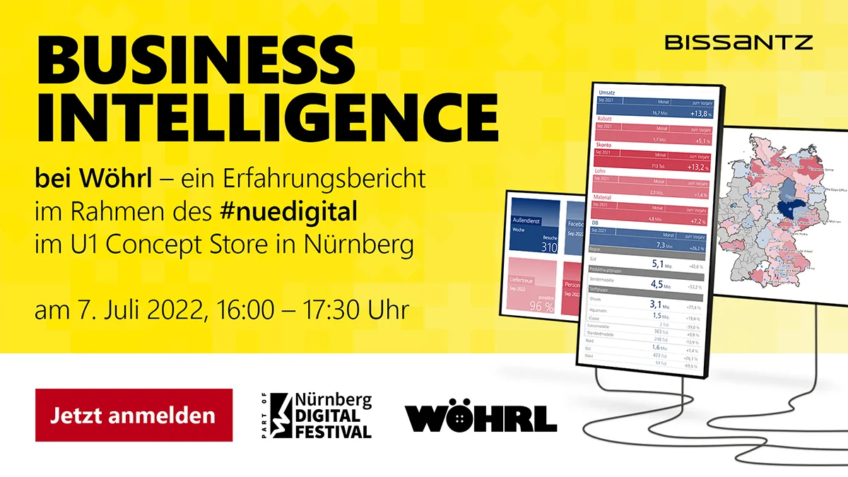 U1 Concept Store (Untergeschoss Wöhrl) Ludwigsplatz 12-24, NürnbergErleben Sie Business Intelligence im Multichannel-Vertrieb eines Modeunternehmens – live am Ort des Geschehens! Bei Wöhrl entsteht täglich ein enormes Datenvolumen: über das deutschlandweite Filialnetz, über den eigenen Online-Shop und über neue Vertriebsfelder, von Amazon bis Zalando. Mithilfe von Bissantz führt das Controlling bei Wöhrl die Daten in hoher Geschwindigkeit und Präzision zusammen und steuert damit die Profitabilität des gesamten Geschäfts über alle Kanäle