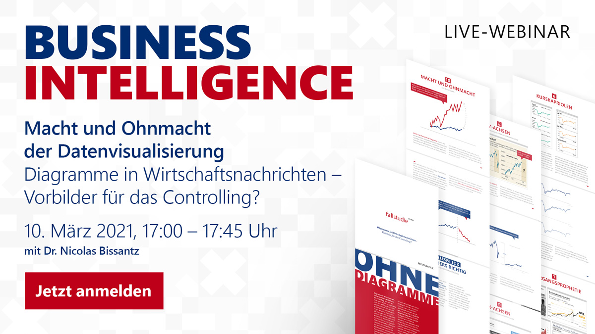 Mit Diagrammen kann und darf es so nicht weitergehen! Diesen Appell richten wir an alle, die als Urheber, Multiplikatoren oder Konsumenten mit Diagrammen zu tun haben, besonders in den Unternehmen. Im Webinar stellen wir unsere Fallstudie über Diagramme in Wirtschaftsnachrichten vor und bekräftigen das Ergebnis: Sie sind keine Vorbilder für Business Intelligence und Controlling.
