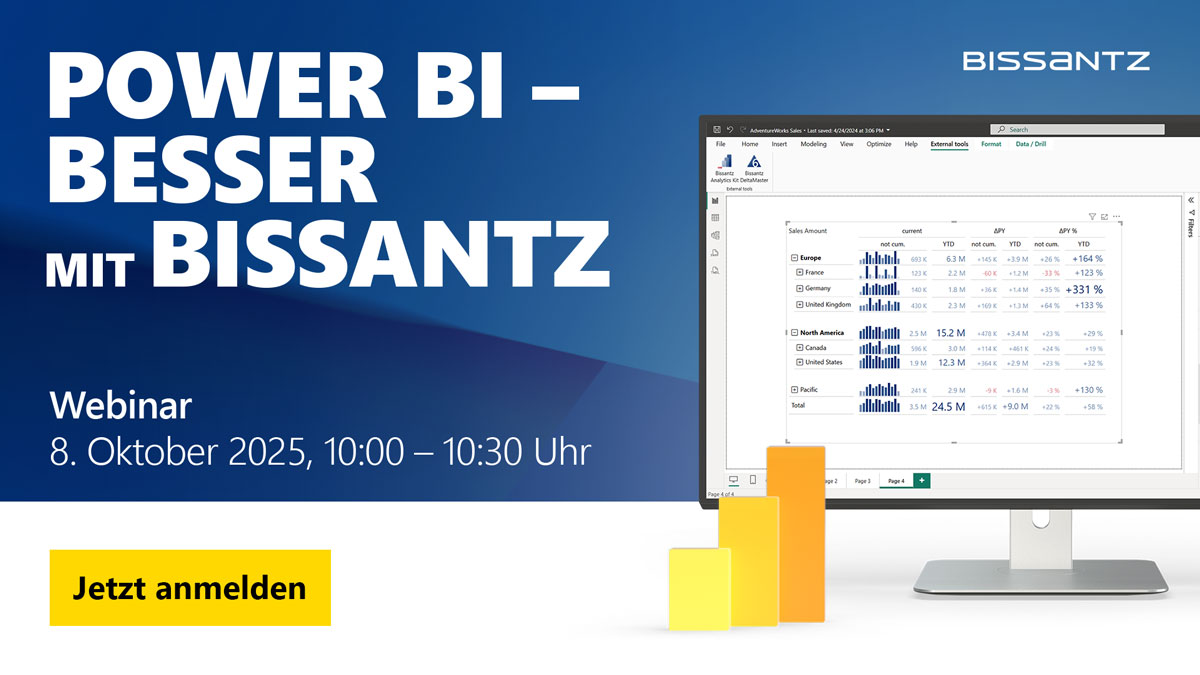 Power BI ist in vielen Unternehmen zum alltäglichen Werkzeug für Controlling und Fachbereiche geworden, mit all seinen Stärken und Schwächen. Besser wird Power BI: mit Bissantz!